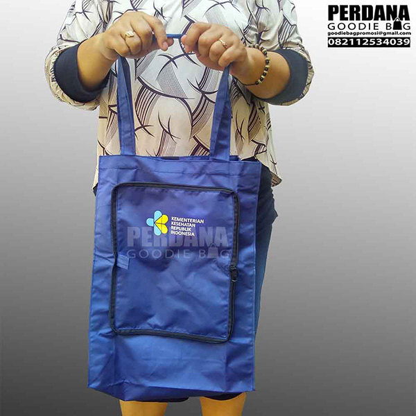 Tas lipat taslan untuk Kemenkes Kuningan Jakarta Selatan berikut ini bisa menjadi salah satu referensi anda dalam memilih model tas dalam bentuk lipat yang di buat secara custom hasil produksi Perdana Goodie Bag.
